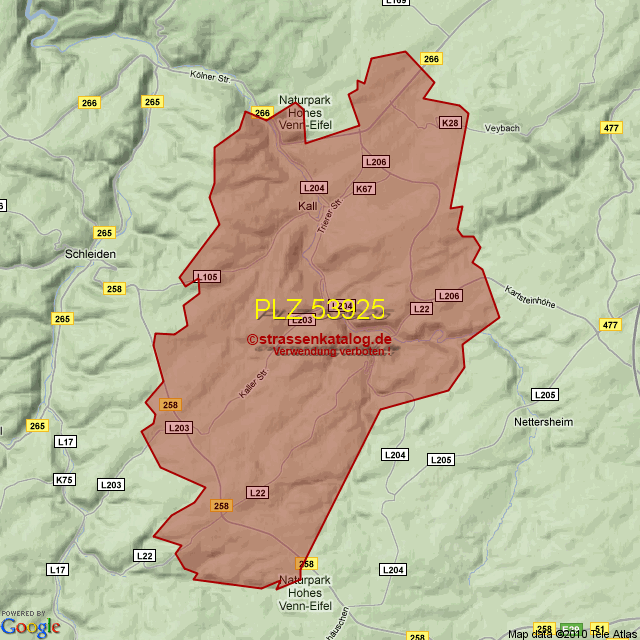 Ortsteile von Kall mit der PLZ 53925