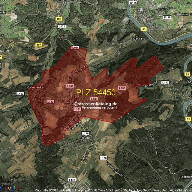 Postleitzahlgebiet (PLZ) 54450