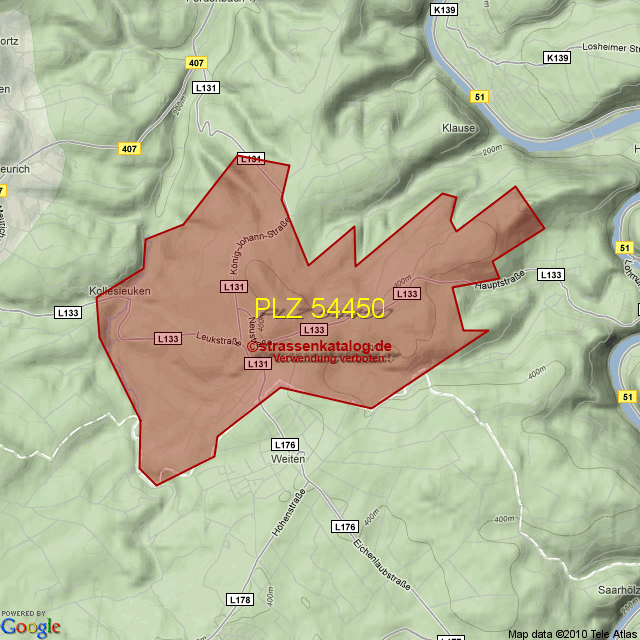 Straßenverzeichnis zur Postleitzahl 54450