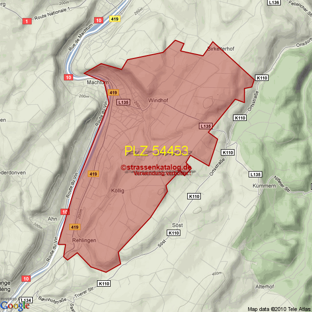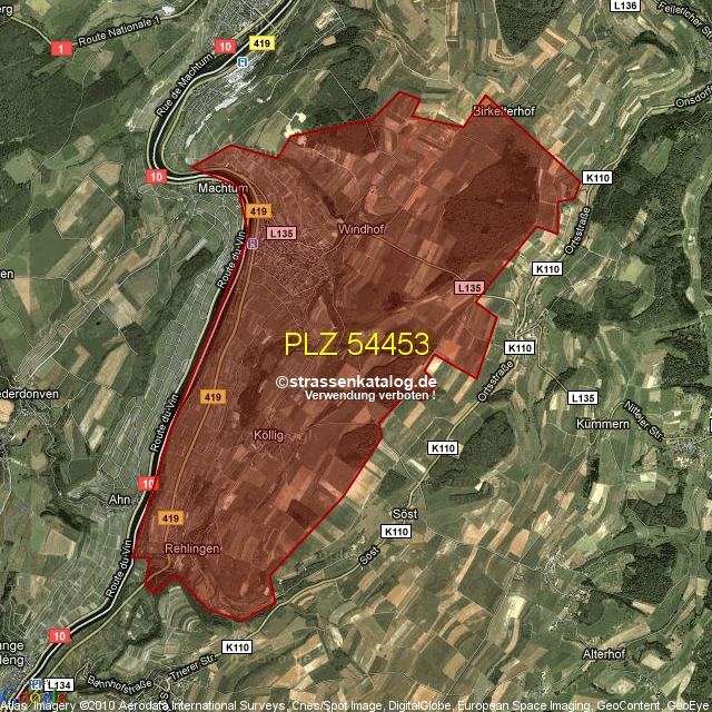 Postleitzahlgebiet (PLZ) 54453