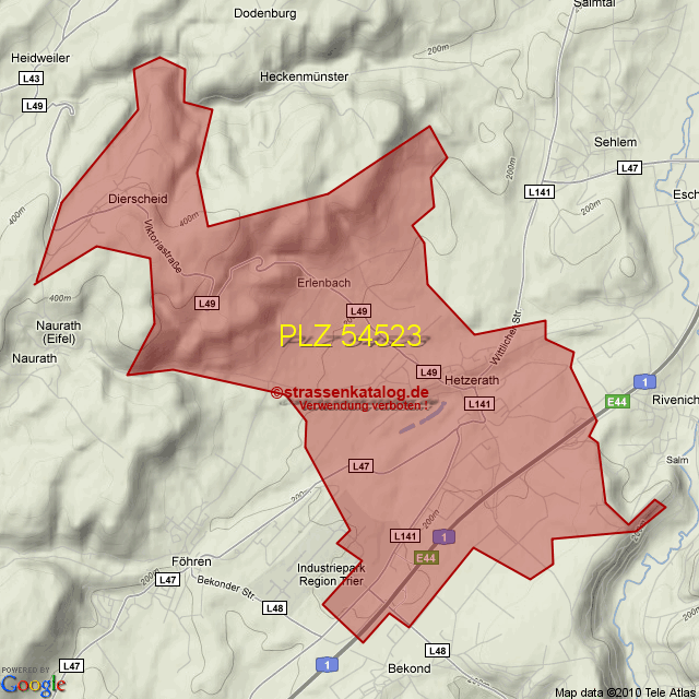Postleitzahlgebiet (PLZ) 54523