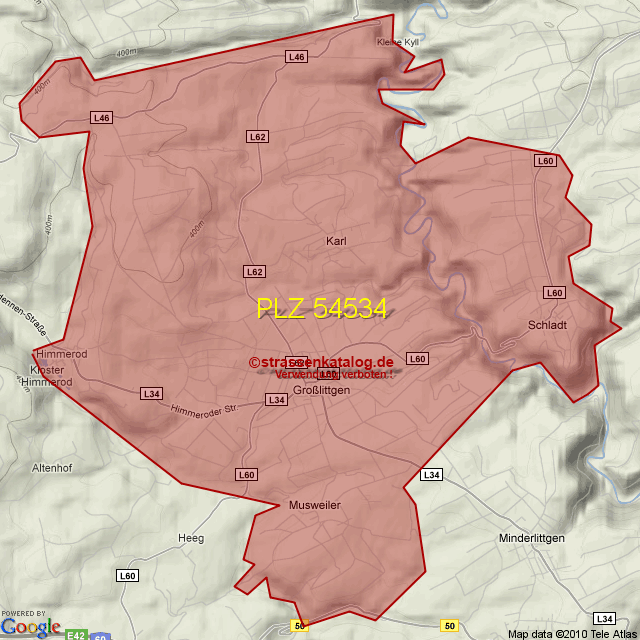 Postleitzahlgebiet (PLZ) 54534