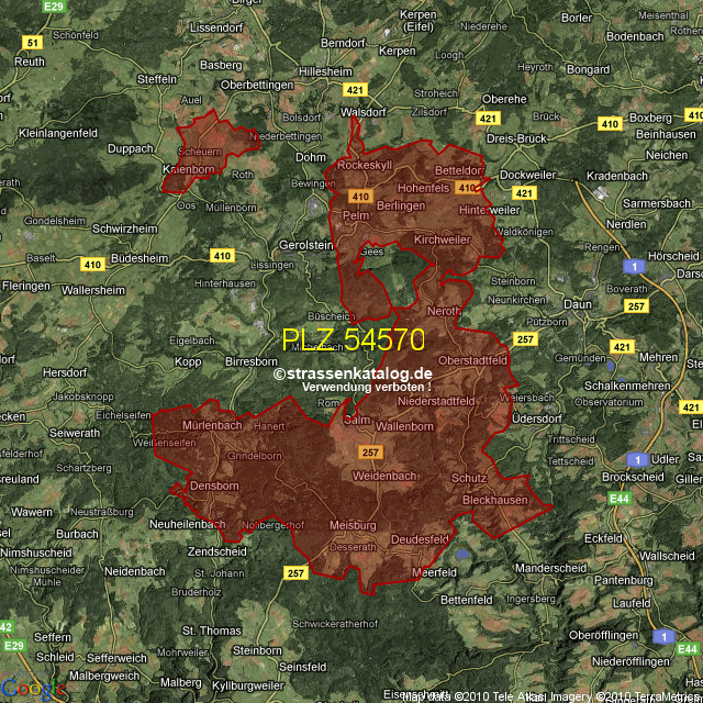 Straßenverzeichnis zur Postleitzahl 54570