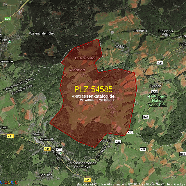 Zu der Postleitzahl 54585 wurden 1 Orte und 0 Ortsteile gefunden.