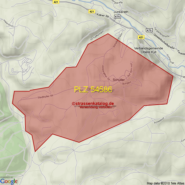 Straßenverzeichnis zur Postleitzahl 54586
