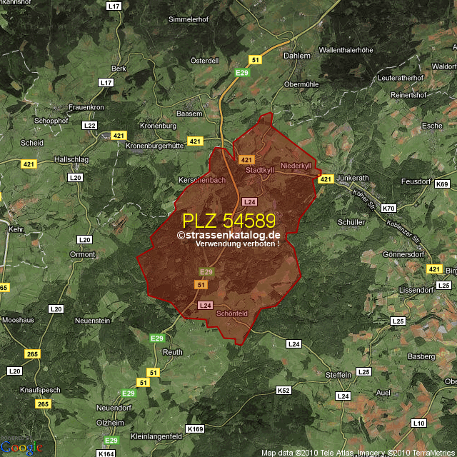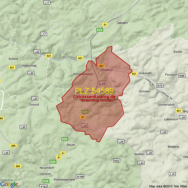 Postleitzahlgebiet (PLZ) 54589
