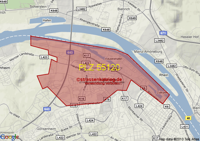 Straßenverzeichnis zur Postleitzahl 55120
