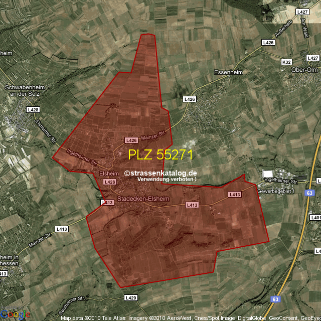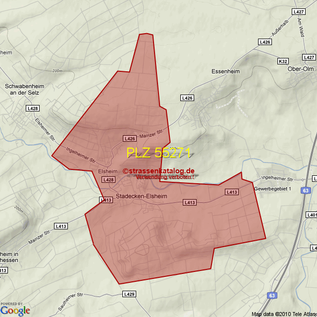 Straßenverzeichnis zur Postleitzahl 55271