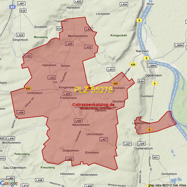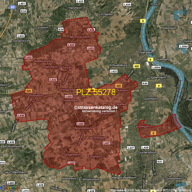 Straßenverzeichnis zur Postleitzahl 55278