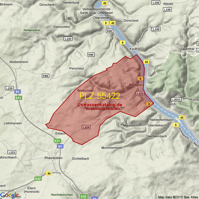 Ortsteile von Bacharach mit der PLZ 55422