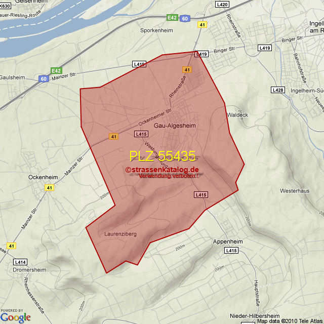 Straßenverzeichnis zur Postleitzahl 55435