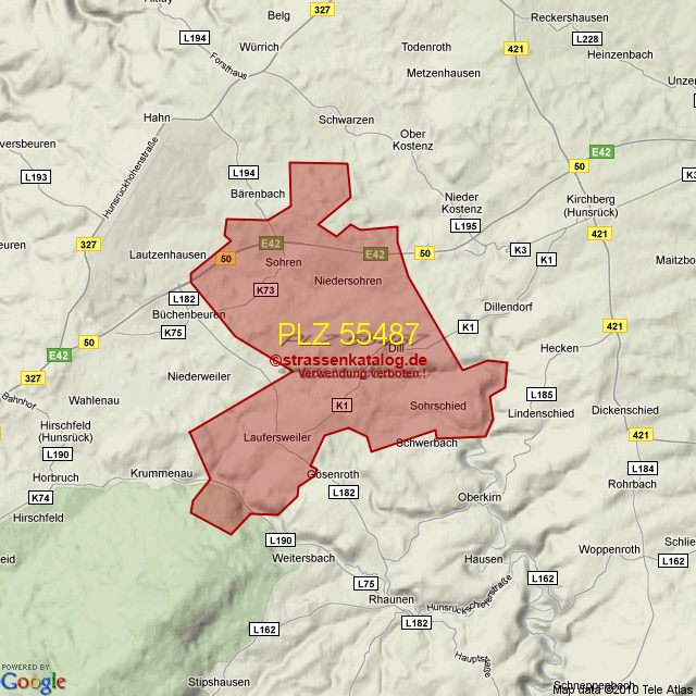 Straßenverzeichnis zur Postleitzahl 55487