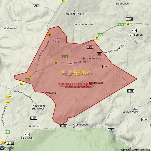 Straßenverzeichnis zur Postleitzahl 55491
