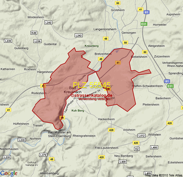 Ortsteile von Bad Kreuznach mit der PLZ 55545