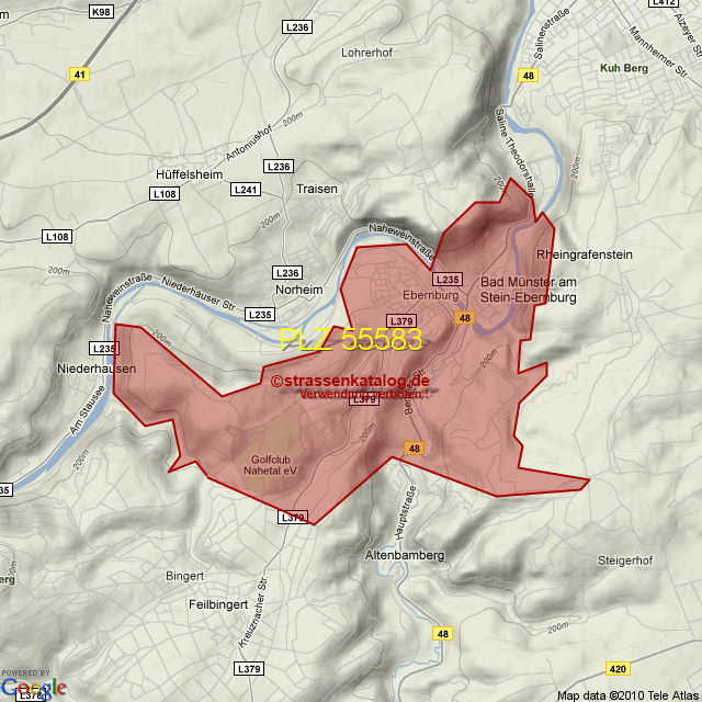 Straßenverzeichnis zur Postleitzahl 55583