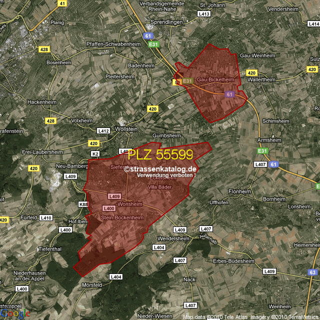 Postleitzahlgebiet (PLZ) 55599