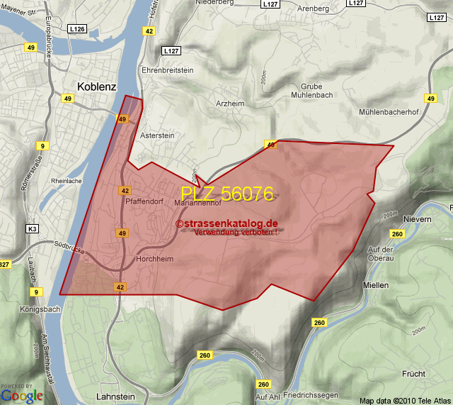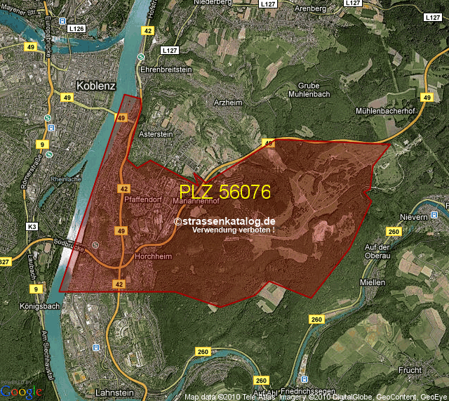 Zu der Postleitzahl 56076 wurden 1 Orte und 5 Ortsteile gefunden.