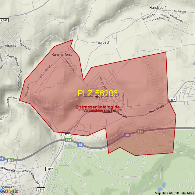Straßenverzeichnis zur Postleitzahl 56206