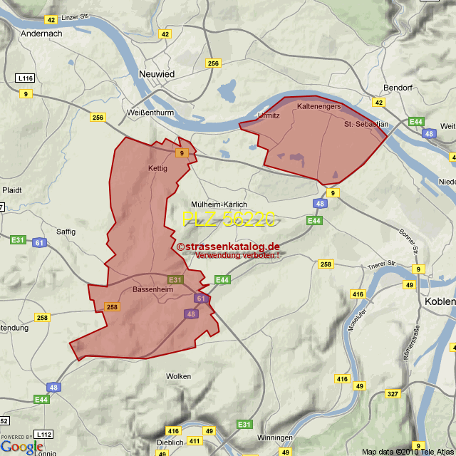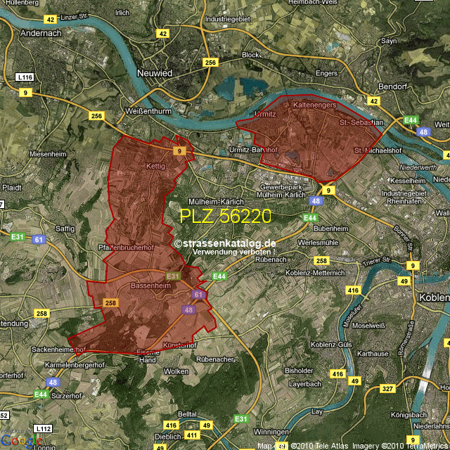 Straßenverzeichnis zur Postleitzahl 56220