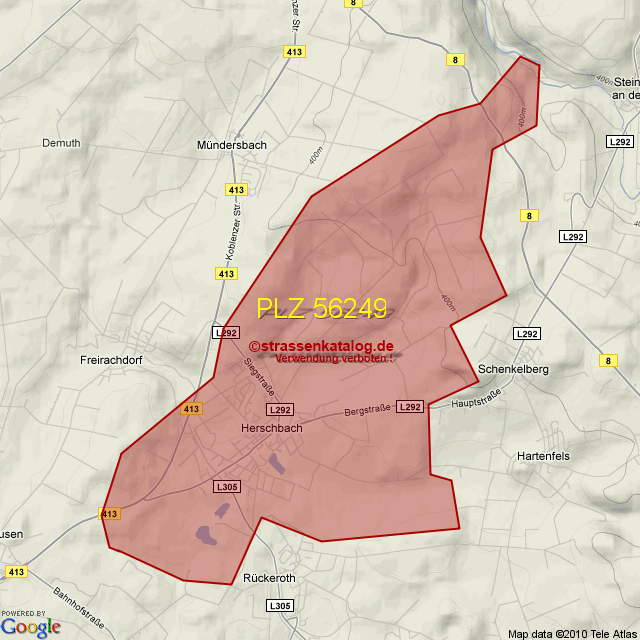 Straßenverzeichnis zur Postleitzahl 56249