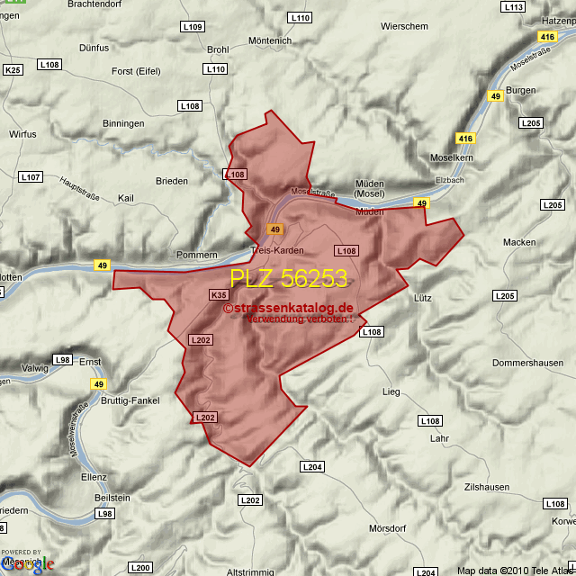 Ortsteile von Treis-Karden mit der PLZ 56253