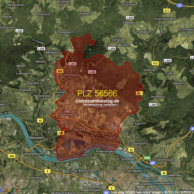 Ortsteile von Neuwied mit der PLZ 56566
