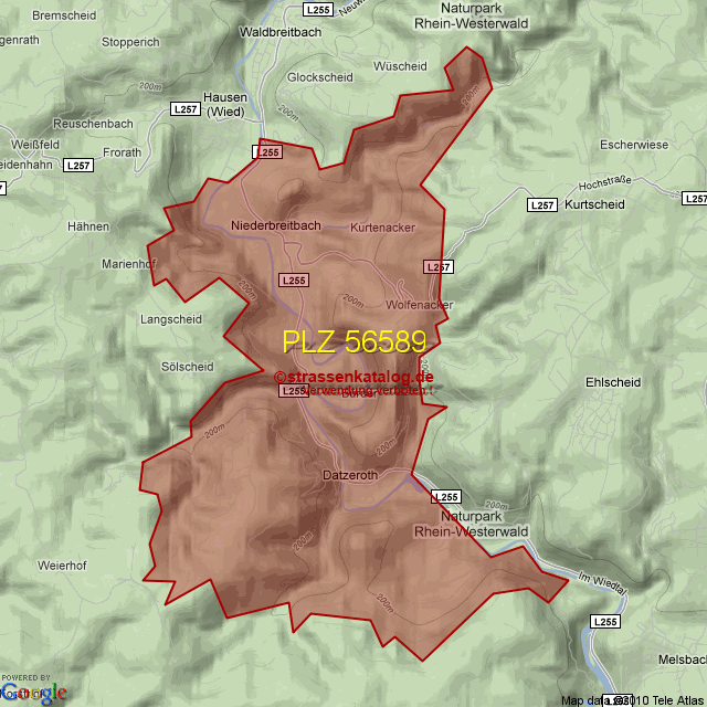 Ortsteile von Niederbreitbach mit der PLZ 56589