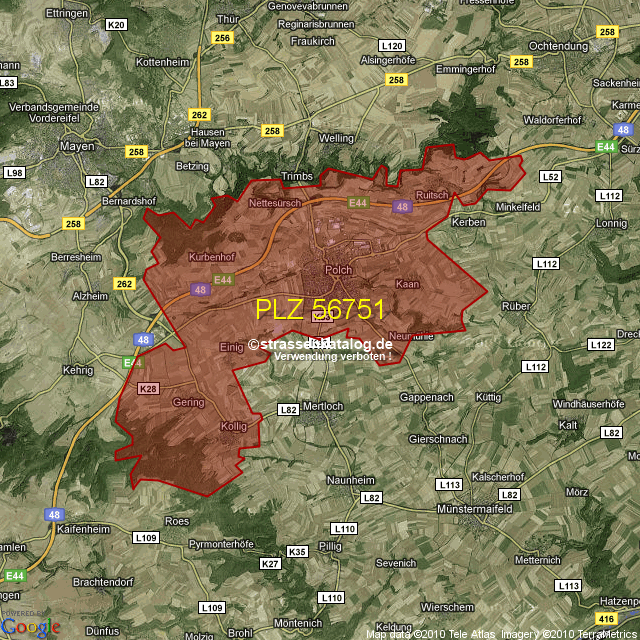 Ortsteile von Polch mit der PLZ 56751