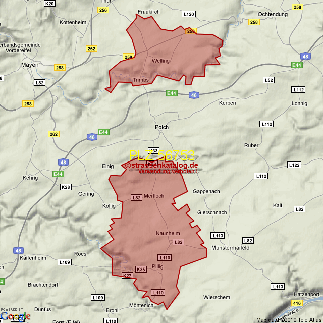 Postleitzahlgebiet (PLZ) 56753