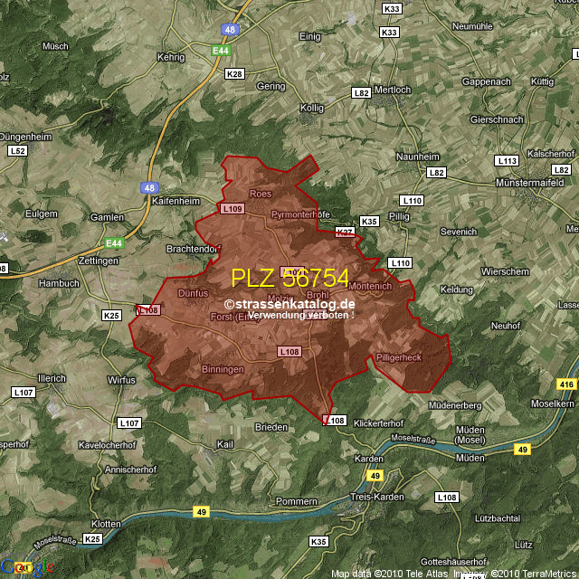 Straßenverzeichnis zur Postleitzahl 56754