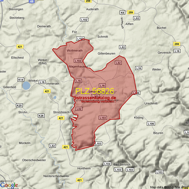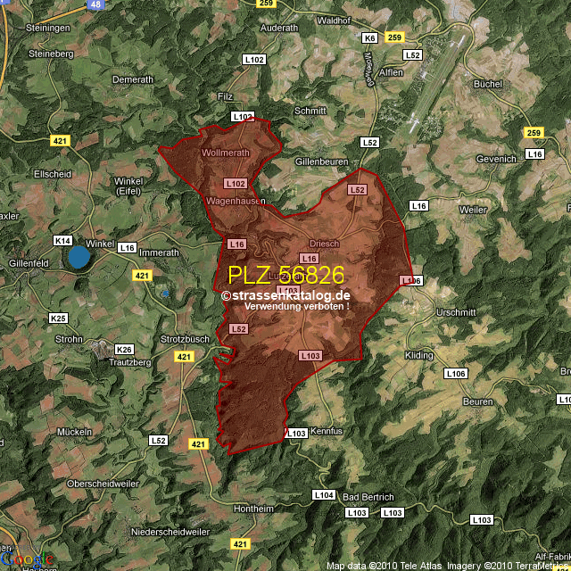 Ortsteile von Lutzerath mit der PLZ 56826
