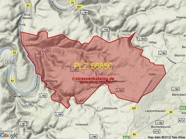 Zu der Postleitzahl 56850 wurden 6 Orte und 0 Ortsteile gefunden.