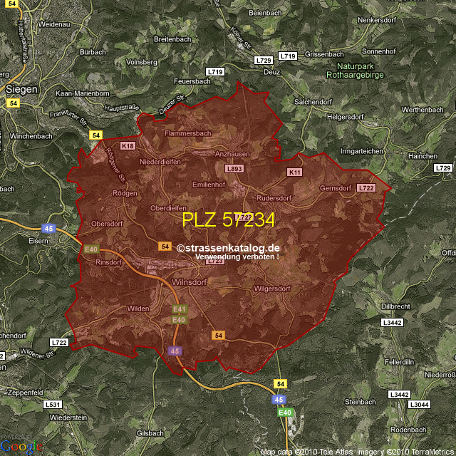 Ortsteile von Wilnsdorf mit der PLZ 57234