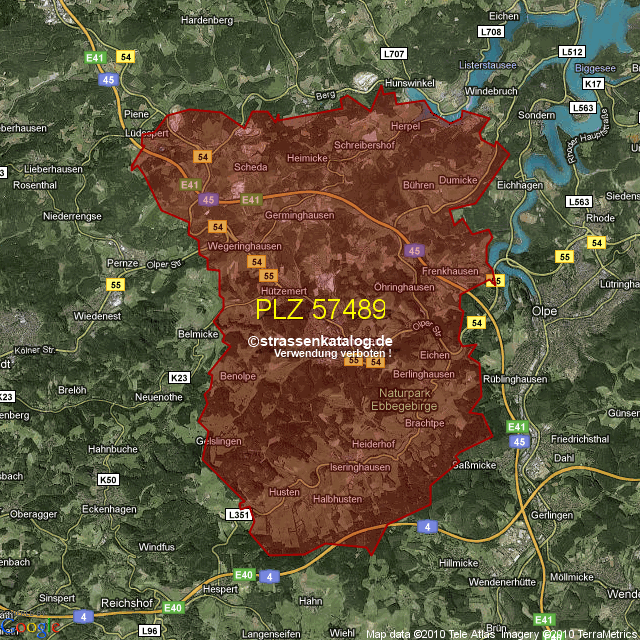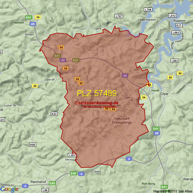 Straßenverzeichnis zur Postleitzahl 57489