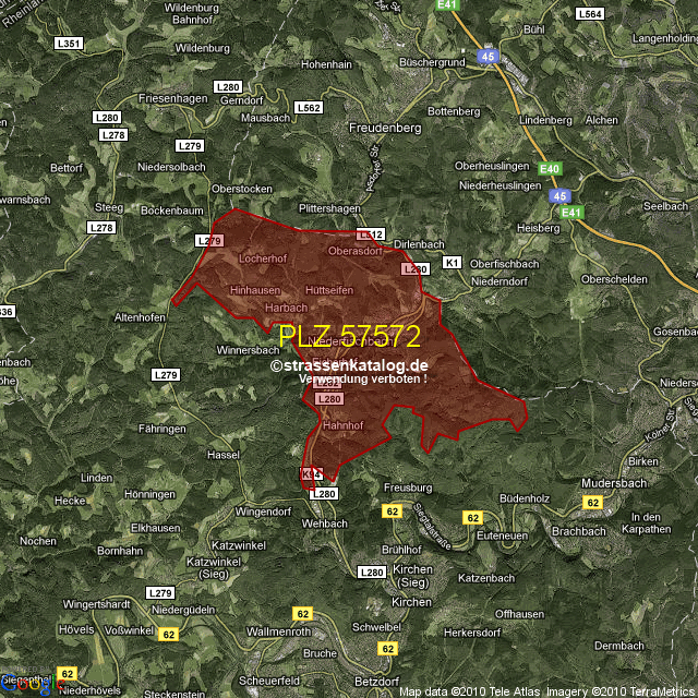 Ortsteile von Niederfischbach mit der PLZ 57572