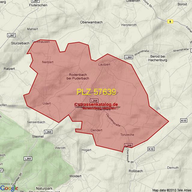 Ortsteile von Rodenbach mit der PLZ 57639