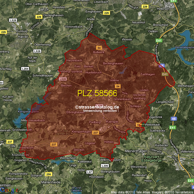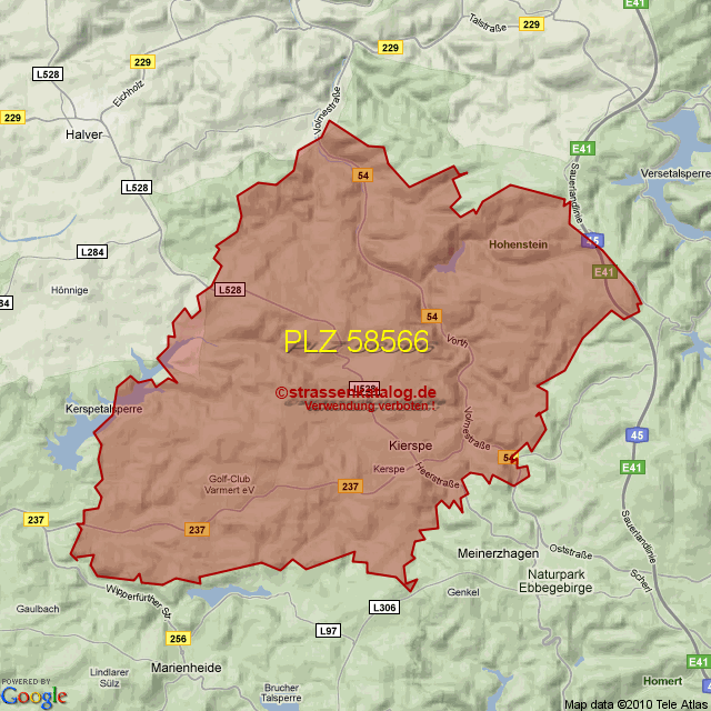 Postleitzahlgebiet (PLZ) 58566