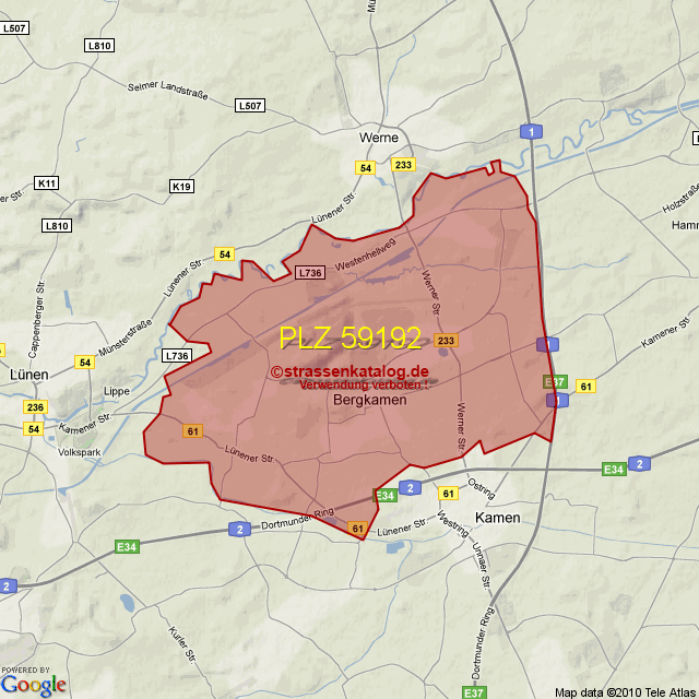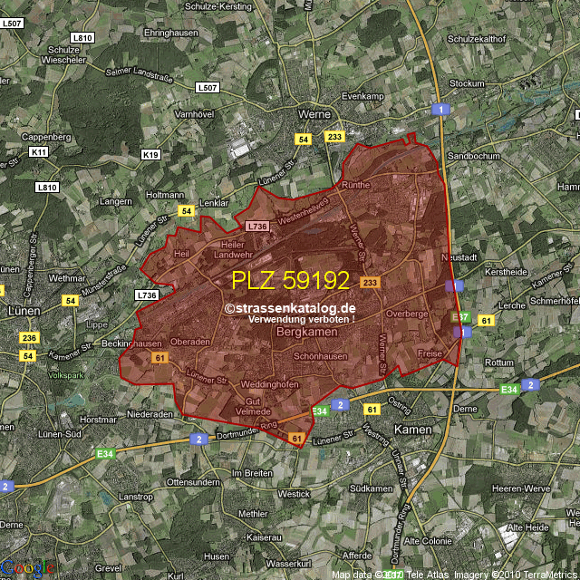 Postleitzahlgebiet (PLZ) 59192