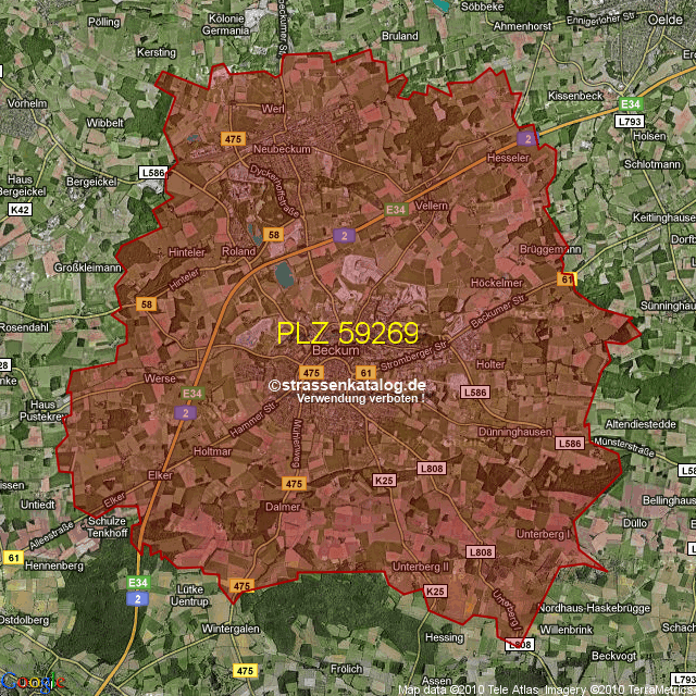 Ortsteile von Beckum mit der PLZ 59269