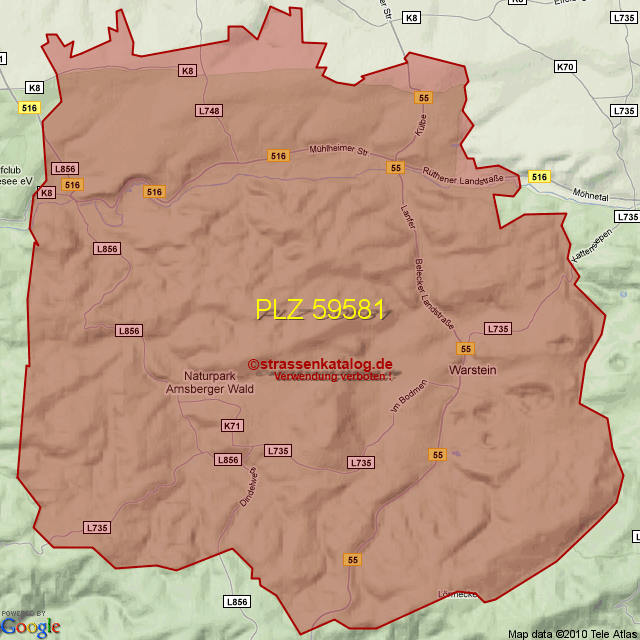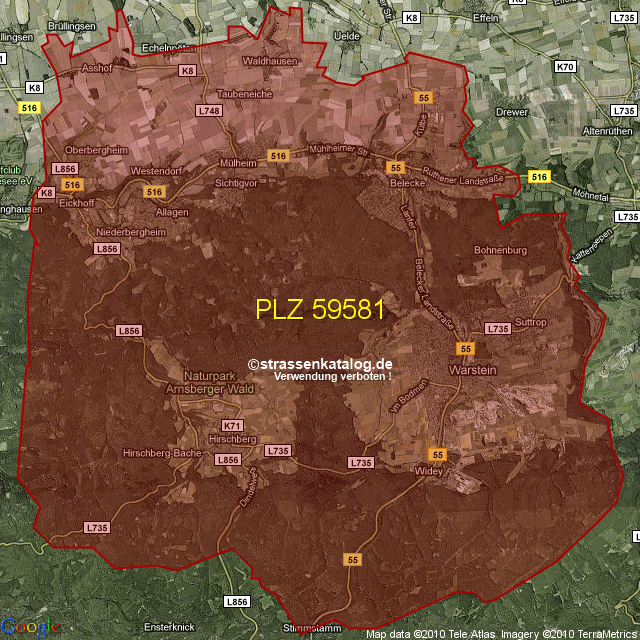 Zu der Postleitzahl 59581 wurden 1 Orte und 10 Ortsteile gefunden.