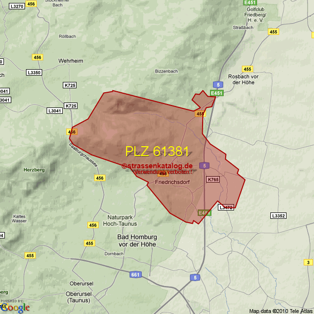Ortsteile von Friedrichsdorf mit der PLZ 61381