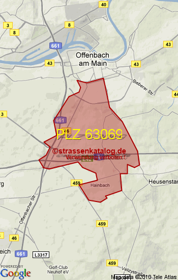 Straßenverzeichnis zur Postleitzahl 63069
