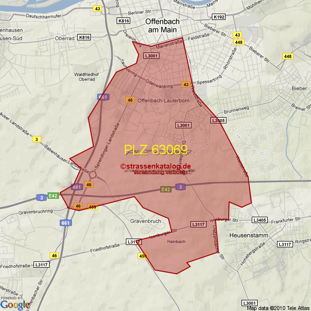 Postleitzahlgebiet (PLZ) 63069