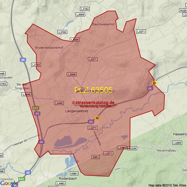 Postleitzahlgebiet (PLZ) 63505