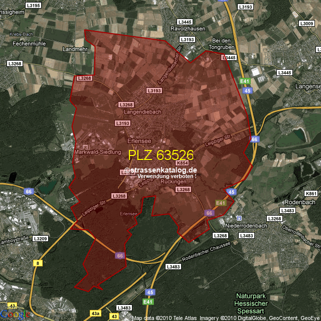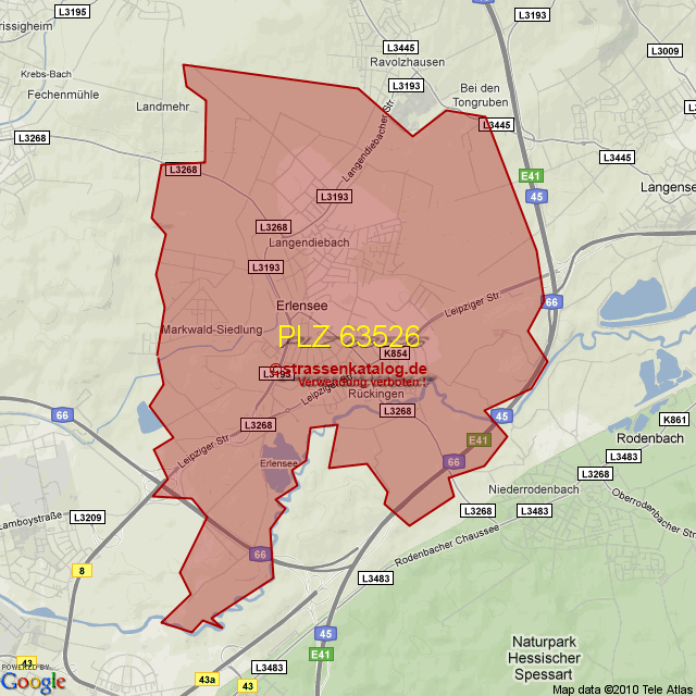 Straßenverzeichnis zur Postleitzahl 63526