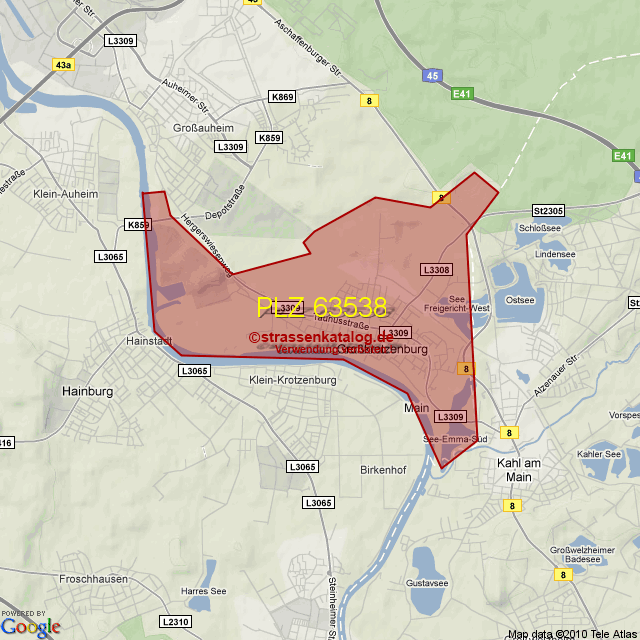 Postleitzahlgebiet (PLZ) 63538