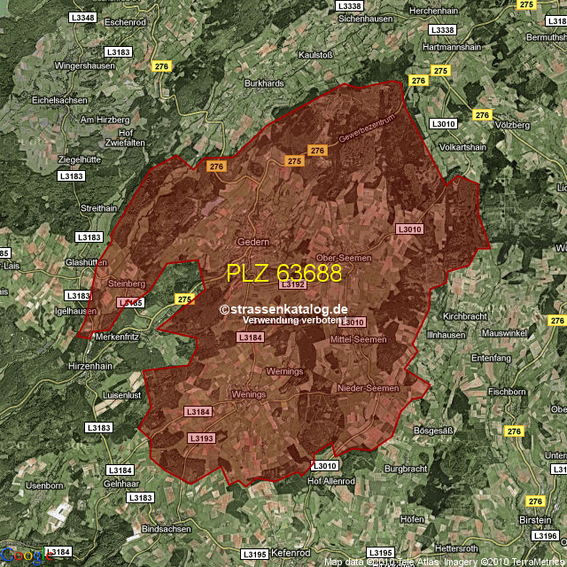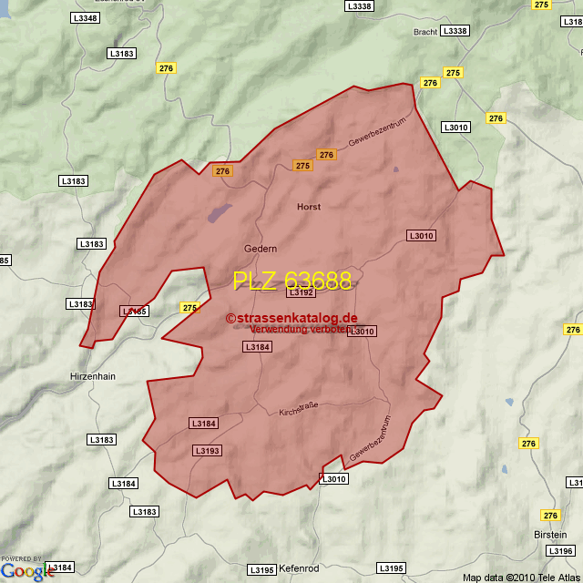 Postleitzahlgebiet (PLZ) 63688