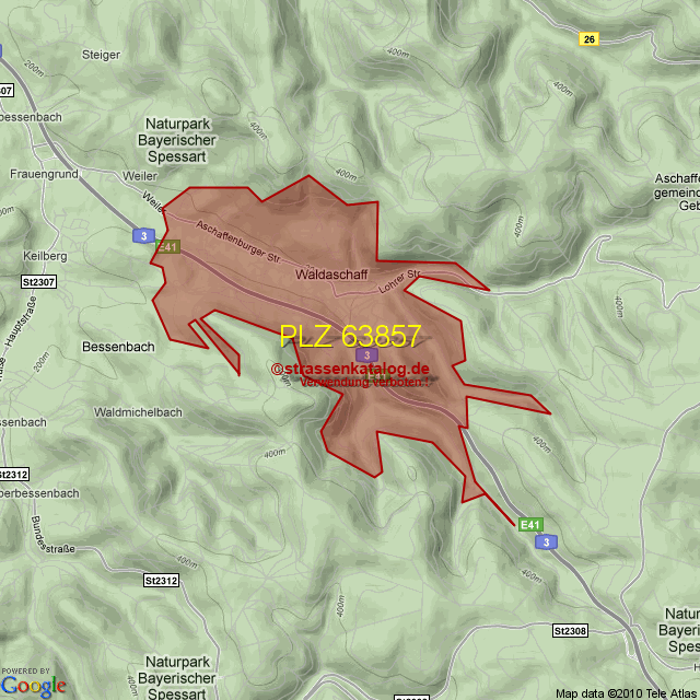Postleitzahlgebiet (PLZ) 63857