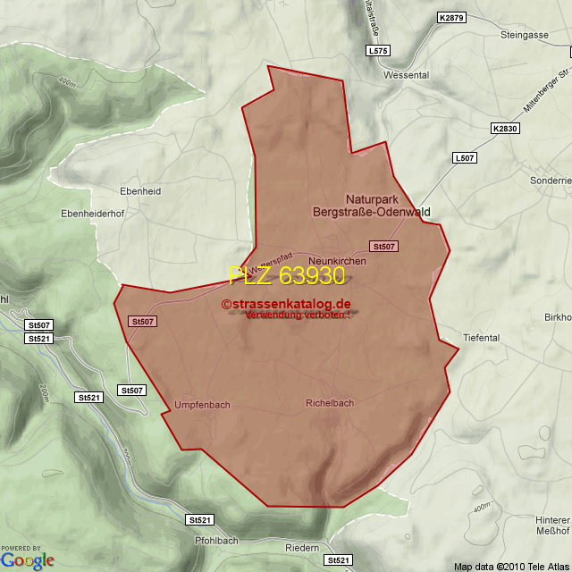 Ortsteile von Neunkirchen mit der PLZ 63930