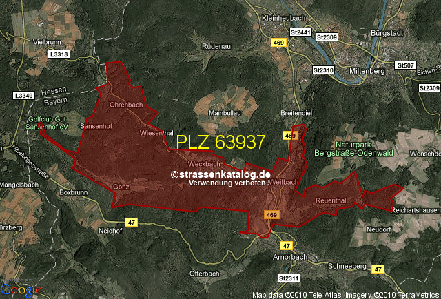 Postleitzahlgebiet (PLZ) 63937